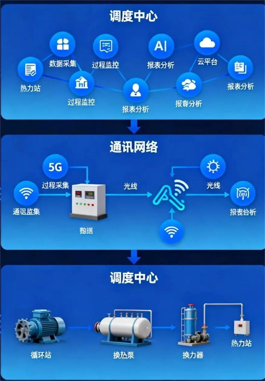 無人值守換熱站數據通過VPN、GPRS等網絡方式自動傳送到調度管理平臺,工作人員通過簡單的可視化操作界面快速完成工作內容,減少人為操作的失誤,提高生產效率,同時節省人力。
