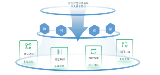 新型智慧供熱則是指在碳達峰碳中和目標指引下,以節能降碳、提升供熱安全保障能力為核心目標,以供熱信息化、自動化和智慧化為基礎,供熱行業進一步深度融合新一代數字技術和新質生產力,實現“源-網-荷-儲”全域協同、熱力系統和電力系統協同、計量與調控協同,實現“精準供熱”和“按需供熱”,實現綠色低碳轉型和高質量發展,成為建設清潔低碳、安全高效的新型能源體系的重要支撐。